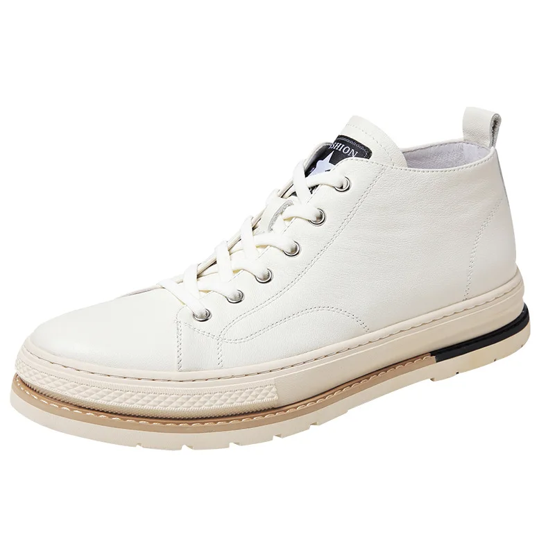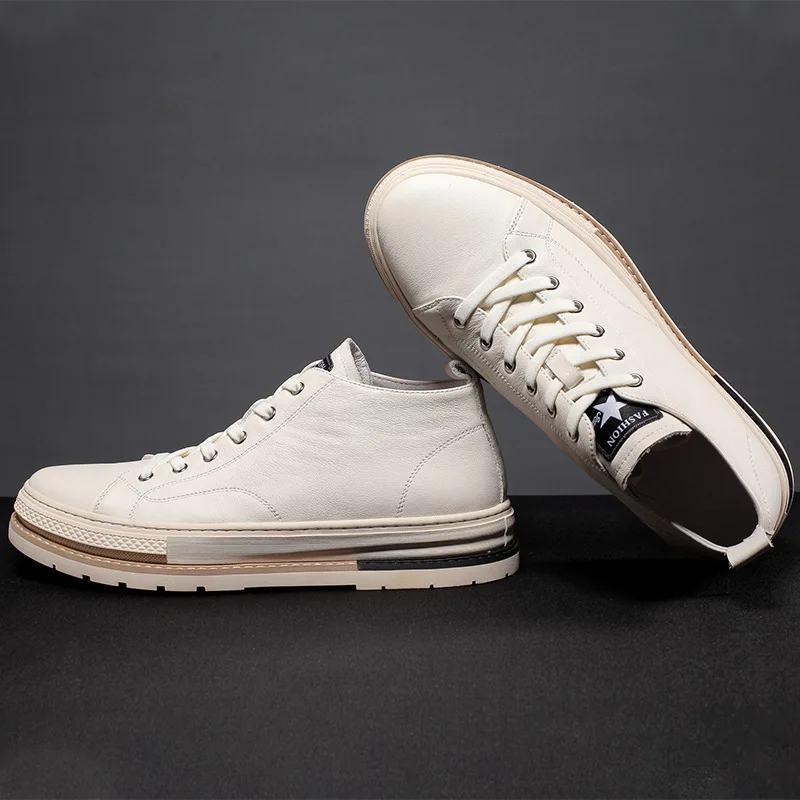 SALE White Genuine Cow Leather High Top Sneakers Men Platform Tennis Running Sports Shoes Luxury Designe